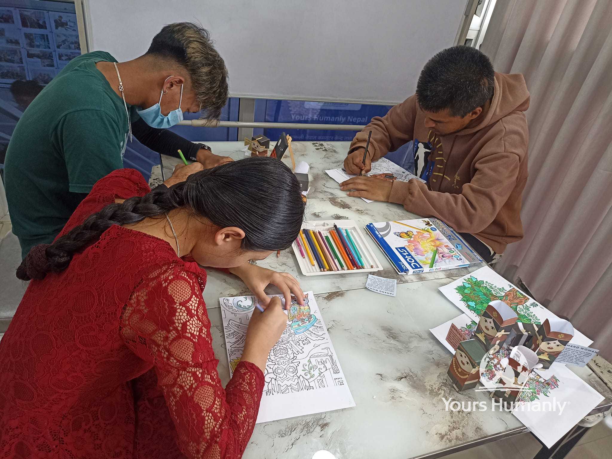 Our Monthly Arts and Crafts Activity at Yours Humanly Nepal provides a creative space where kids, teens, and their families can come together to enjoy a variety of fun and engaging activities. From painting and coloring to cutting and pasting, making paper dolls, and playing board games, our sessions are designed to inspire creativity and foster family bonding. Due to the growing popularity of these activities, we are excited to announce plans to introduce formal painting classes, as well as additional craft sessions, including basic hand sewing, beadwork, and clay modeling. These activities not only provide a platform for artistic expression but also help develop important skills, encourage teamwork, and create lasting memories for all participants. With increased funding, we will be able to organize more of these sessions, covering the costs of supplies and facilitators, ensuring that even more children and families have access to these valuable opportunities.